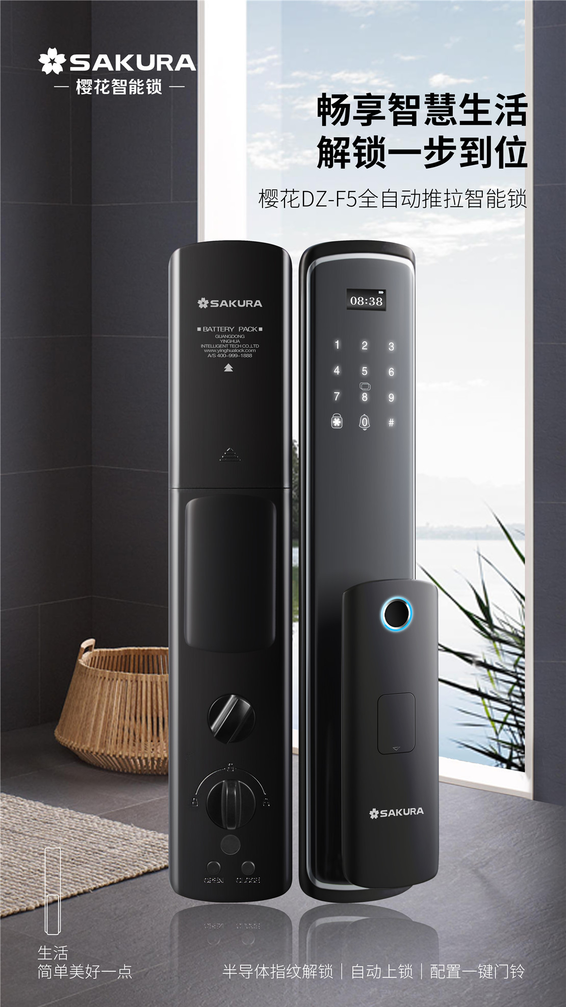 櫻花DZ-F5全自動推拉智能鎖